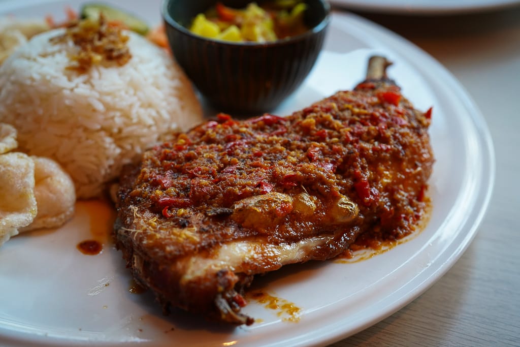 This dish that has become one of my favourites at Berempah. Pieces of fried fish filet are coated with a rich, spicy Balinese sauce and served with rice. The sauce isn’t overly spicy but full of complex and aromatic flavours.