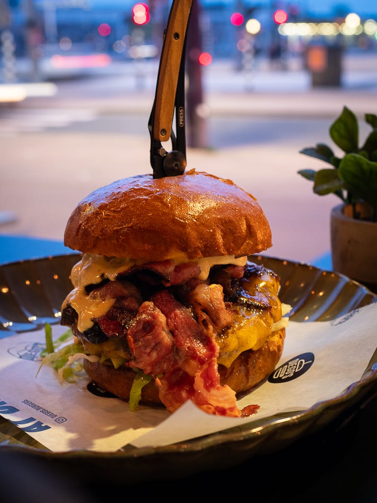 The hamburger restaurant is located at the base of the iconic Erasmus Bridge, in the trendy Kop van Zuid neighbourhood. As you enter the restaurant, you’ll see the open kitchen right in front you. Here’s a tip: before you walk over to your table, take a peek inside and see Chef Diego in action while he grills beef patties on high heat!