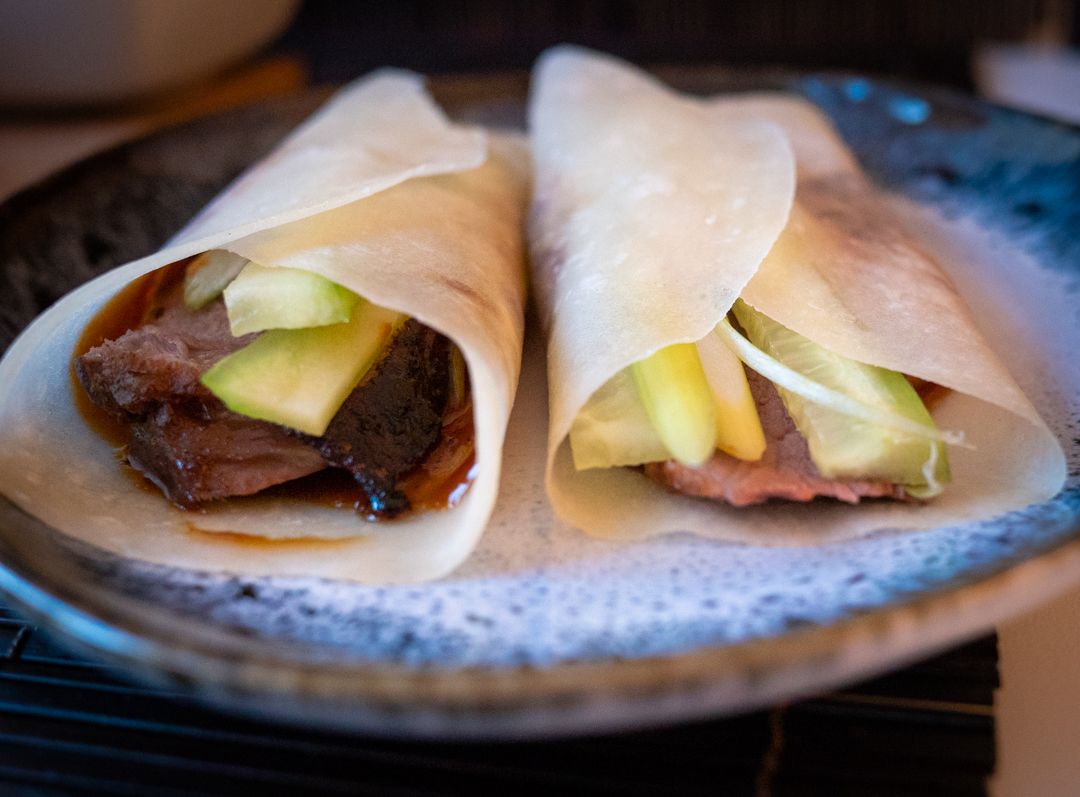 The Peking duck wrap is ready to eat! Enjoy!